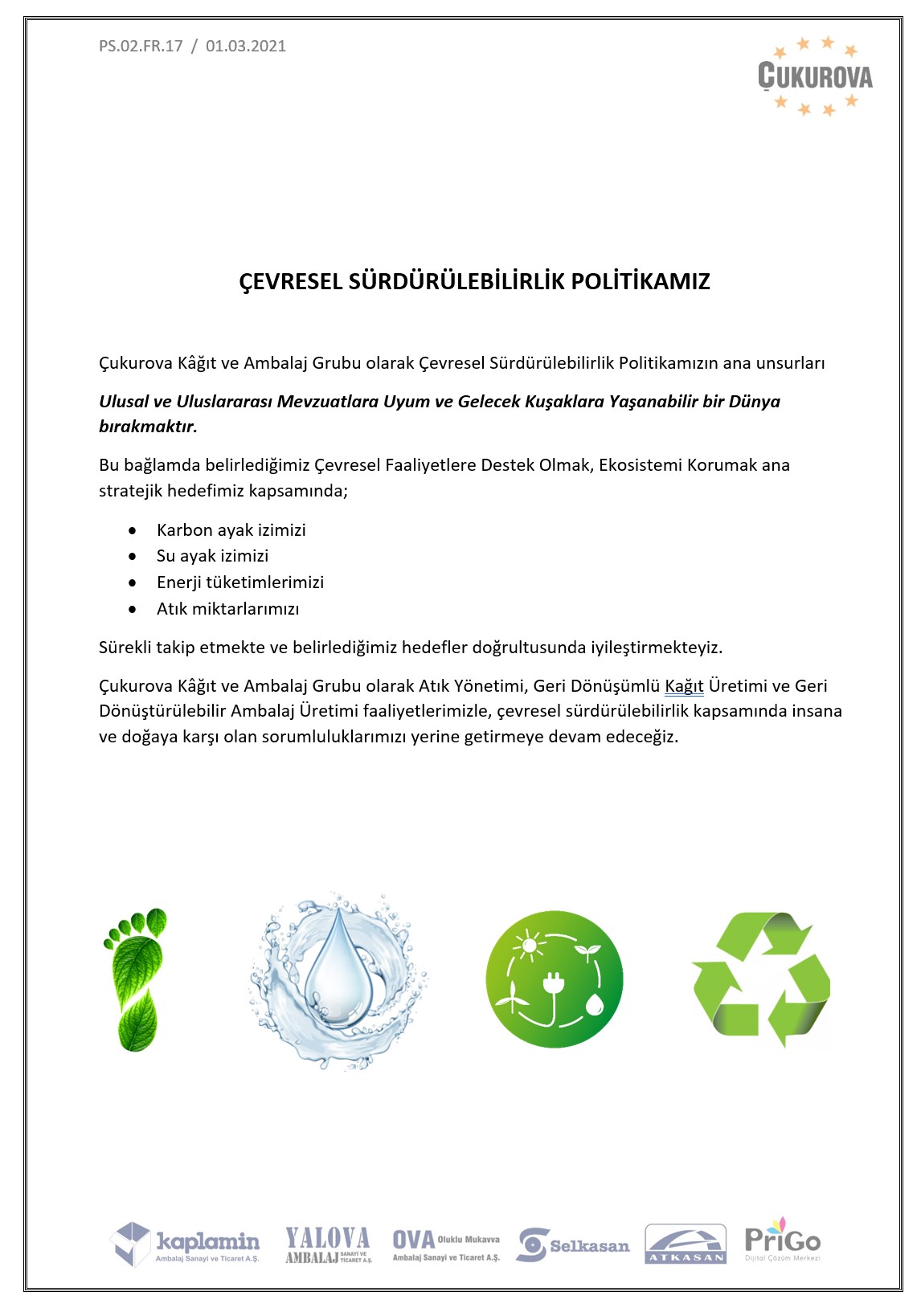 Çevresel Sürdürülebilirlik Politikamız